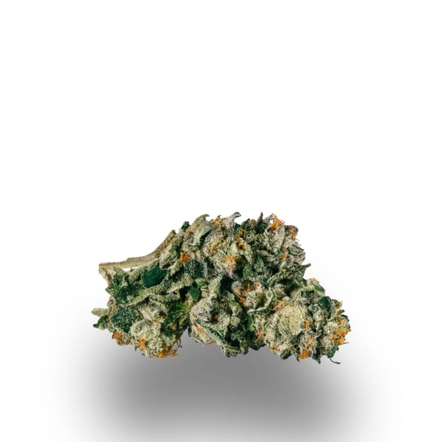 Juicy peach, cream, and gas combine for a sweet, flavorful hybrid with smooth character and full aroma. The buds are thick and frosted, glowing with orange and gold tones beneath a resin-rich finish. Spiked Peach highlights Fade’s playful dessert gas profile with fruity punch and creamy balance.