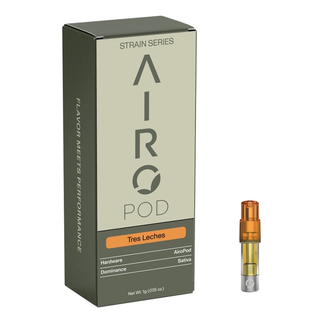 Energize your senses with Airo Brands’ Strain Series Tres Leches. Tres Leches is a Sativa that delivers a smooth yet uplifting experience designed to brighten your day. As you inhale, enjoy terpenes Myrcene, β-Caryophyllene, Limonene for creamy sweetness layered with subtle vanilla and citrus notes that awaken your palate. As you exhale, feel a clear-headed cerebral lift paired with an upbeat, motivated mindset—perfect for creative projects, social plans, or powering through your to-do list.